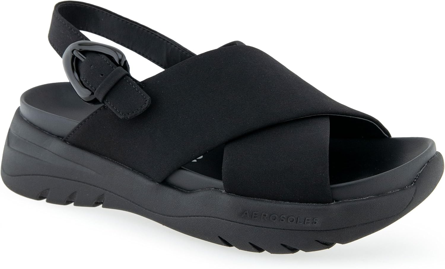 Aerosoles Women's HARLOW Buckled Strap Flatform Sandal combines comfort and style. The Diamond Flex Outsole blends fashion with practicality, making it ideal for both work and casual occasions.