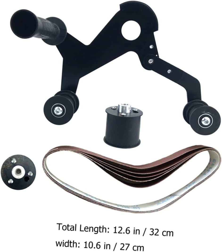 Package Include 1 x belt sander 1 x roller 5 x sanding belts Characteristics -Size:32.00X27.00X9.00cm/12.58X10.61X3.54in belt sander for metal working -Color: sanders for woodworking -Material:Iron, rubber, sandpaper mini polisher - The round tube sander is equipped with abrasive belts suitable for grinding stainless steel tubes, wooden tubes, aluminum tubes, copper tubes, titanium tubes, etc hand held sander. - This belt sander is manufactured with professional technology to ensure the product can work for a long time hand sander cordless. - It can achieve the effect of grinding, drawing, polishing and mirror surface treatment polishing attachment - Support the mechanical rotating body, reduce the friction coefficient during its movement, and ensure its rotation accuracy Polishing Sander Attachment. - The protective cover is designed to prevent and foreign matter from flying out, and the operation is belt.Goods DescriptionSander Kit for Rust Removal Easy to install and use, it can be easily applied to , a very accessory that will meet your needs well.handheld sander This product is a belt sander, which is made of iron, sandpaper and rubber material, with texture, and