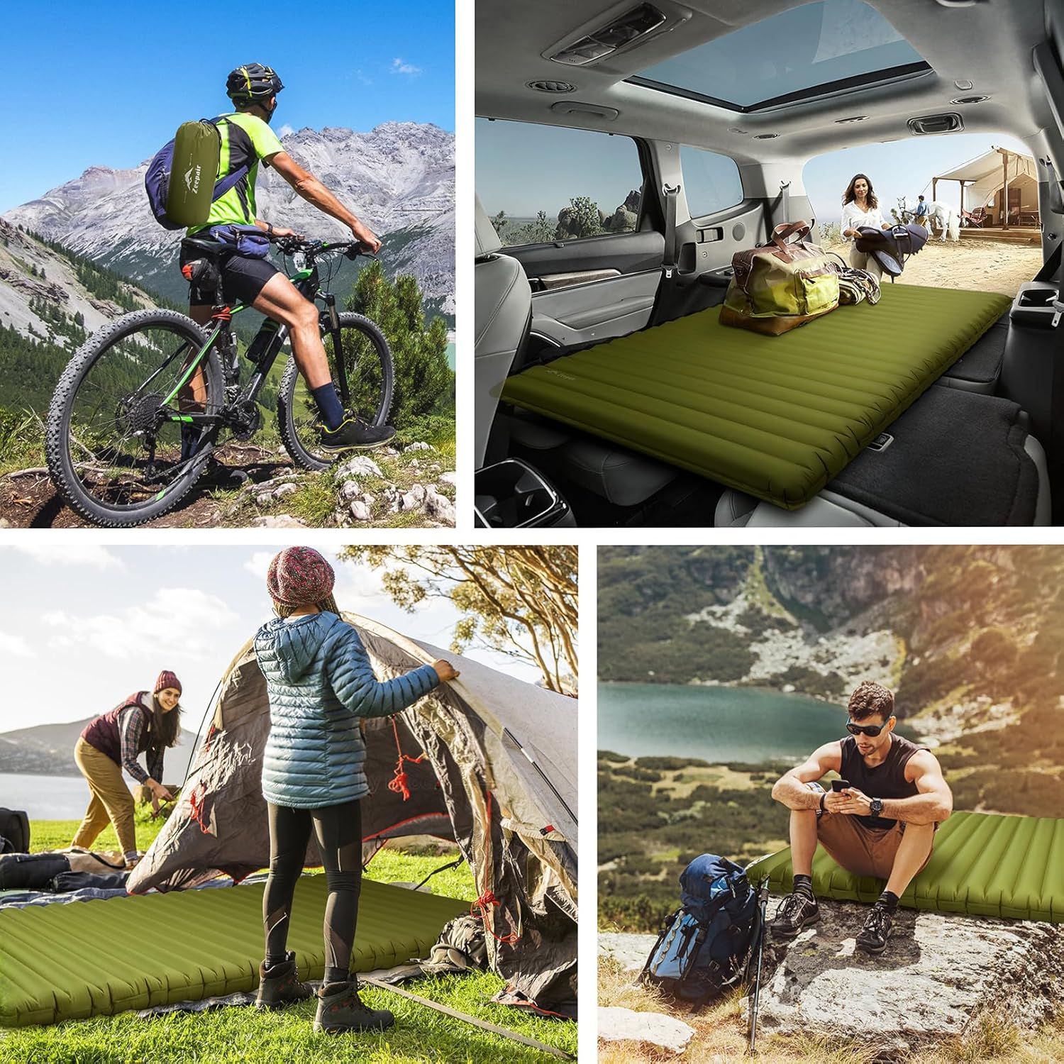 Experience ultimate comfort wherever your outdoor adventures take you with the BUHECO inflatable ultra-light self inflatable sleeping pad. Designed for hikers, campers, and backpackers, this twin self inflating pad features a striped air chamber structure that evenly distributes body pressure and adapts to uneven terrain, offering the perfect balance of softness and stability. Weighing just 3.64 lbs (1.65 kg), this lightweight air mattress packs down easily into the included carry bag, making it ideal for backpacking, camping trips, and any outdoor activity where portability matters.Built from durable 380T 20D nylon with a waterproof TPU coating, this 2 person inflatable mattress is resistant to moisture, punctures, and abrasion, ensuring it stands up to rugged outdoor conditions. Inflating the 3.7-inch thick sleeping pad is fast and easy using the included pump bag—simply attach to the valve, scoop air, and compress the bag until fully inflated. Adjust the firmness to your liking, then release the air and fold it back into the storage bag for effortless packing. Perfect for any outdoor adventure, this foldable twin air mattress works for hiking, camping, RV travel, backpacking, or weekend park outings. Make the BUHECO double sleeping mats your go-to companion for comfortable sleep in the wild.