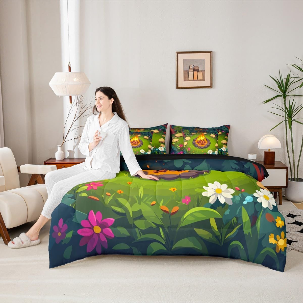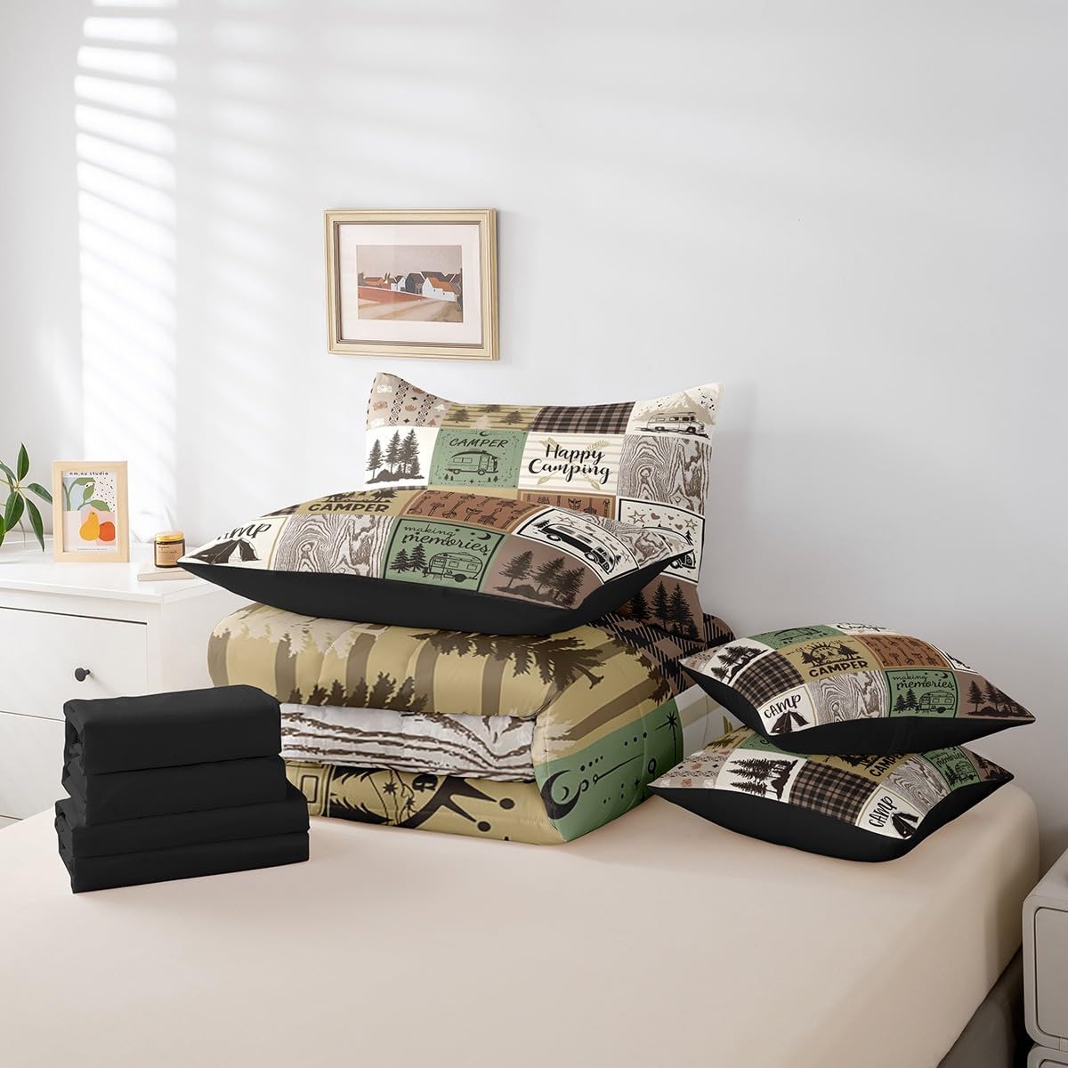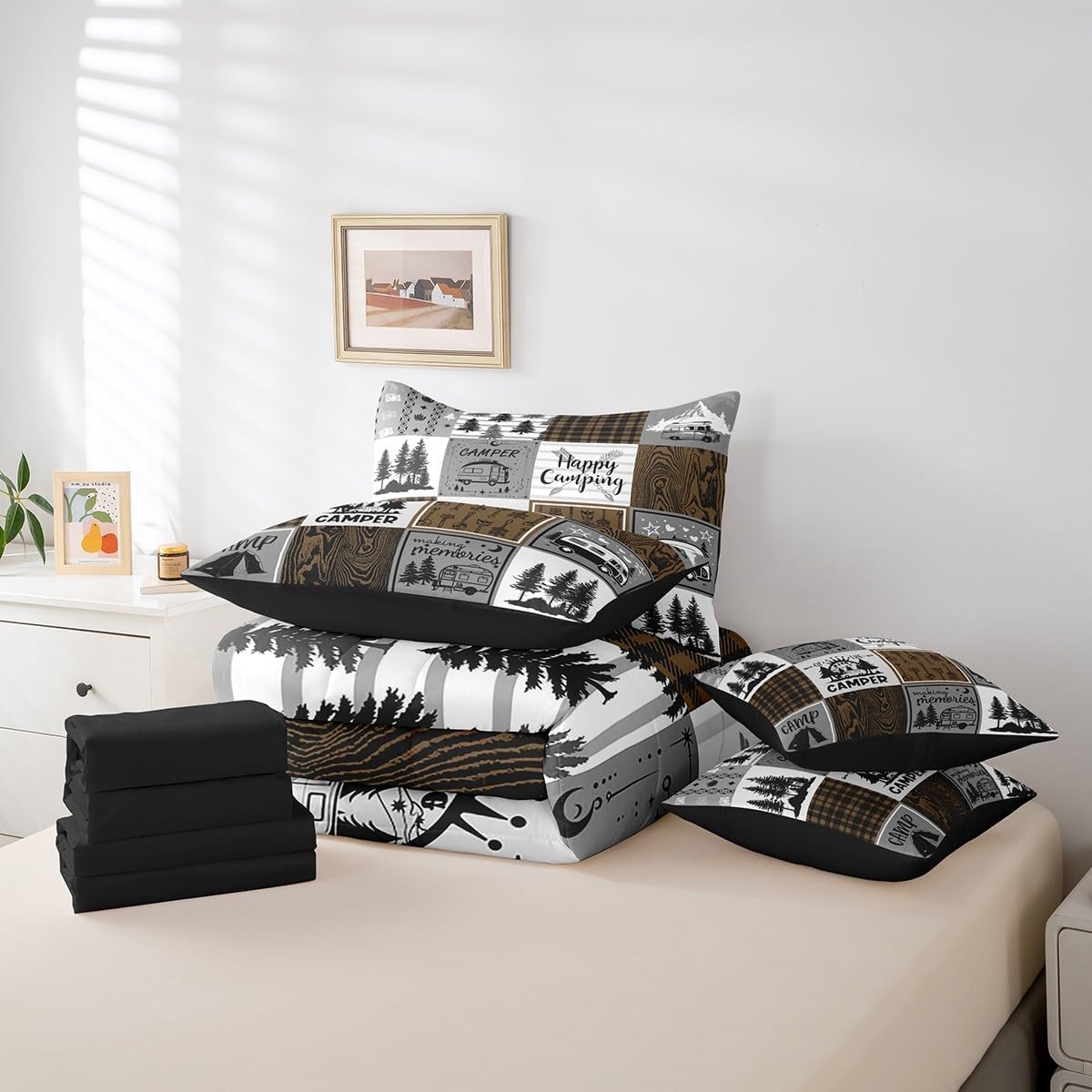 Welcome to Home Store We have specialized in home textile for many years,We sincerely hope that our products can give your room a brand new look Size Information Twin size : 1 Comforter 68"x90", 1x Fitted Sheet 39"x75"x16",1x Flat Sheet 96"x66", 2x Pillowcase 20"x30" and 2 Pillow Cover 18"x18" Full size : 1 Comforter: 79"x90", 1x Fitted Sheet 54"x75"x16",1x Flat Sheet 96"x66", 2x Pillowcase 20"x30" and 2 Pillow Cover 18"x18" Queen size : 1 Comforter: 90"x90", 1x Fitted Sheet 60''x80''x16",1x Flat Sheet 102''x90", 2x Pillowcase 20''x30'' and 2 Pillow Cover 18"x18" King size : 1 Comforter: 104"x90", 1x Fitted Sheet 78''x80''x16",1x Flat Sheet 106''x90", 2x Pillowcase 20''x35'' and 2 Pillow Cover 18"x18" Feature : We have products with different element patterns,which can easily decorate the theme room you want Our bedding is Soft and lightweight,but it can keep you warm for all season Our Comforter Pattern Printing are very definition Occasion and Presents our bedding set is not only great for your Bedroom or Guest Room,but also good for your Rv Bunks,it's also a great Present for your kids,families,friends,boyfriend,girlfriend,husband and wife Personalized As a manufacturer of digital printed home textiles, we follow current trends,Some of our products : Duvet cover,Comforter Set, Sheet Set,Blanket,Window Curtains,Shower Curtains,can be customized with names or Something you want to say to someone Our Wish We sincerely hope you'll love our bed set
