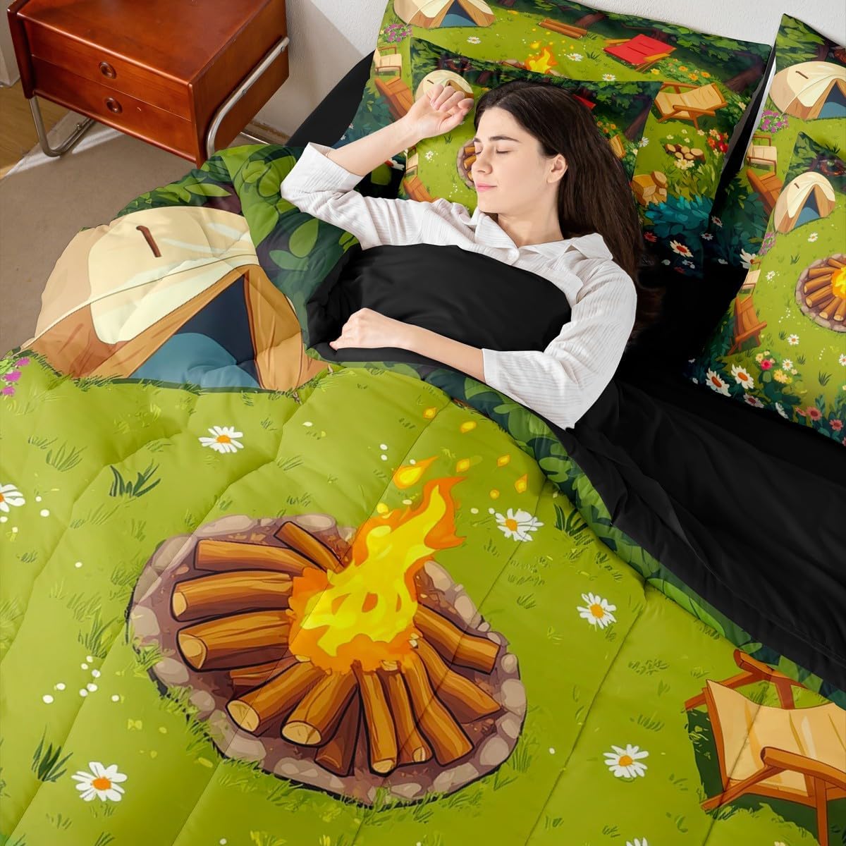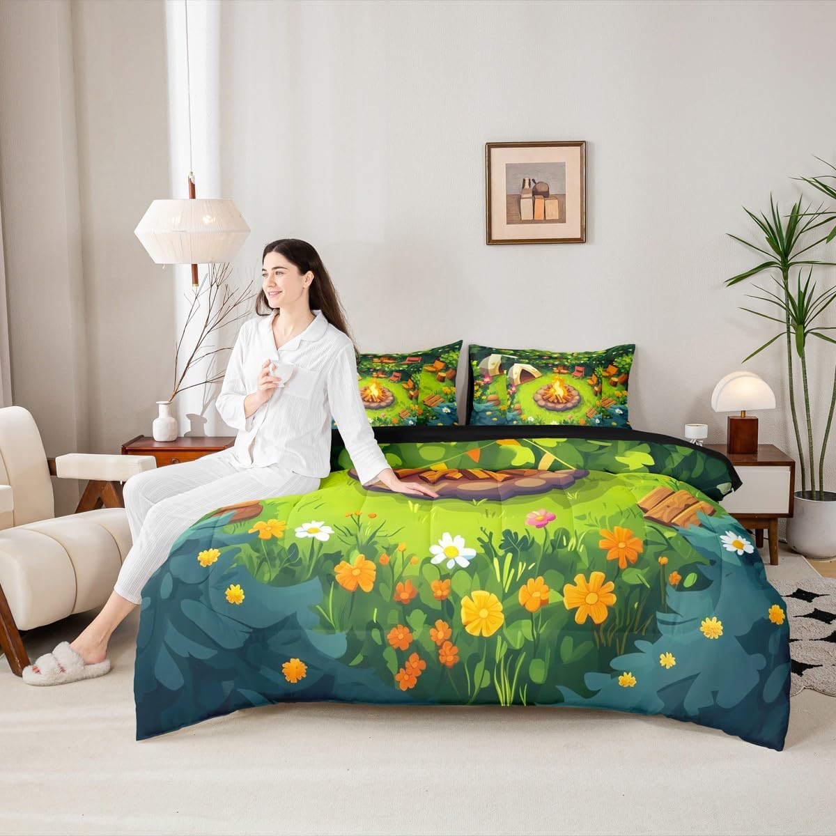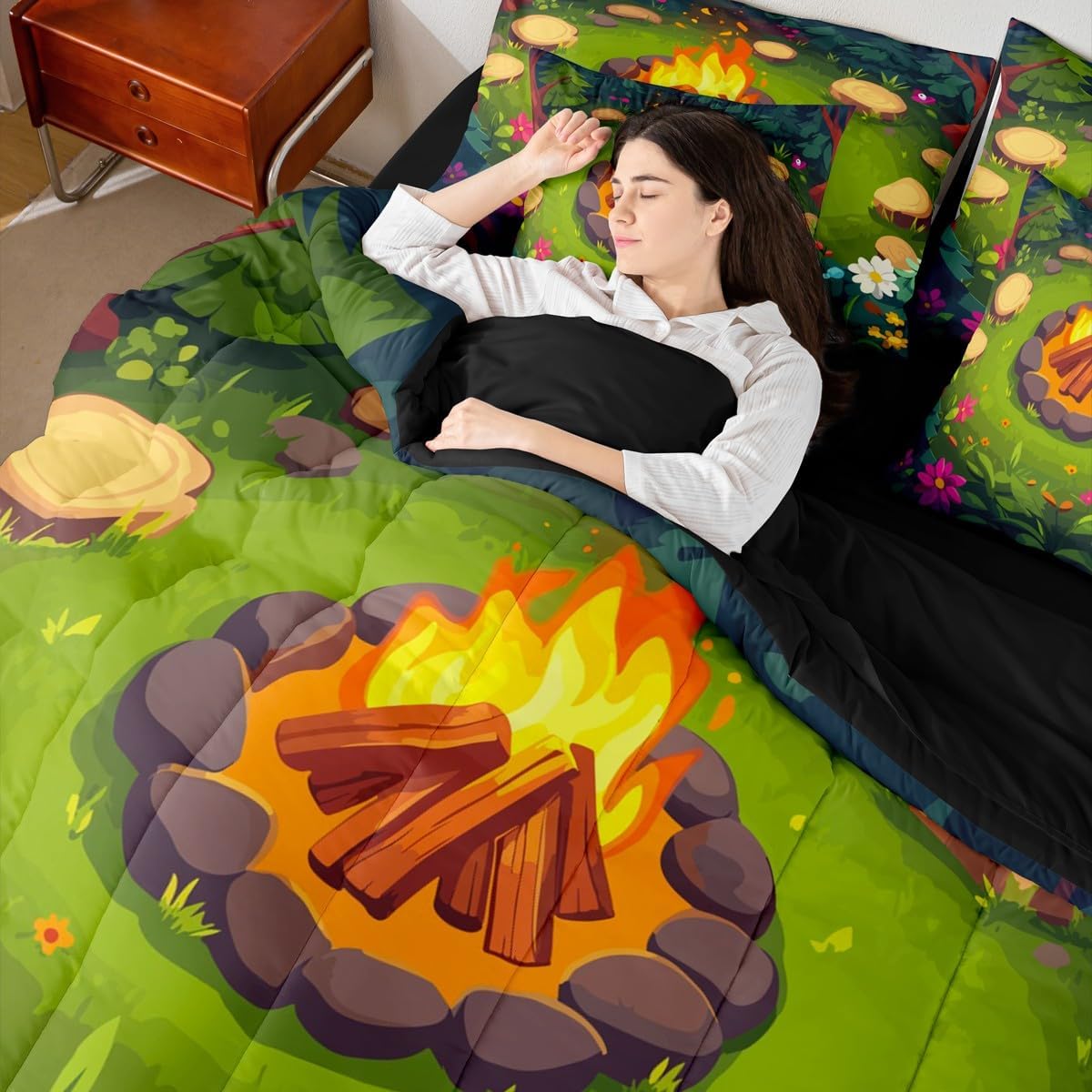 Welcome to Home Store We have specialized in home textile for many years,We sincerely hope that our products can give your room a brand new look Size Information Twin size : 1 Comforter 68"x90", 1x Fitted Sheet 39"x75"x16",1x Flat Sheet 96"x66", 2x Pillowcase 20"x30" and 2 Pillow Cover 18"x18" Full size : 1 Comforter: 79"x90", 1x Fitted Sheet 54"x75"x16",1x Flat Sheet 96"x66", 2x Pillowcase 20"x30" and 2 Pillow Cover 18"x18" Queen size : 1 Comforter: 90"x90", 1x Fitted Sheet 60''x80''x16",1x Flat Sheet 102''x90", 2x Pillowcase 20''x30'' and 2 Pillow Cover 18"x18" King size : 1 Comforter: 104"x90", 1x Fitted Sheet 78''x80''x16",1x Flat Sheet 106''x90", 2x Pillowcase 20''x35'' and 2 Pillow Cover 18"x18" Feature : We have products with different element patterns,which can easily decorate the theme room you want Our bedding is Soft and lightweight,but it can keep you warm for all season Our Comforter Pattern Printing are very definition Occasion and Presents our bedding set is not only great for your Bedroom or Guest Room,but also good for your Rv Bunks,it's also a great Present for your kids,families,friends,boyfriend,girlfriend,husband and wife Personalized As a manufacturer of digital printed home textiles, we follow current trends,Some of our products : Duvet cover,Comforter Set, Sheet Set,Blanket,Window Curtains,Shower Curtains,can be customized with names or Something you want to say to someone Our Wish We sincerely hope you'll love our bed set