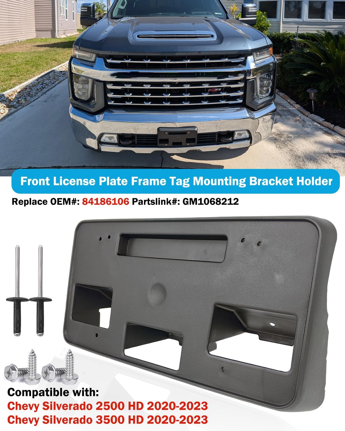 Specification: Brand new Color: Black Applications: Fits For Chevy Silverado 2500 HD / 3500 HD 2020 2021 2022 2023 Easy to install and use. Durable in use. Package included: 1pc x License Plate Bracket and Screws