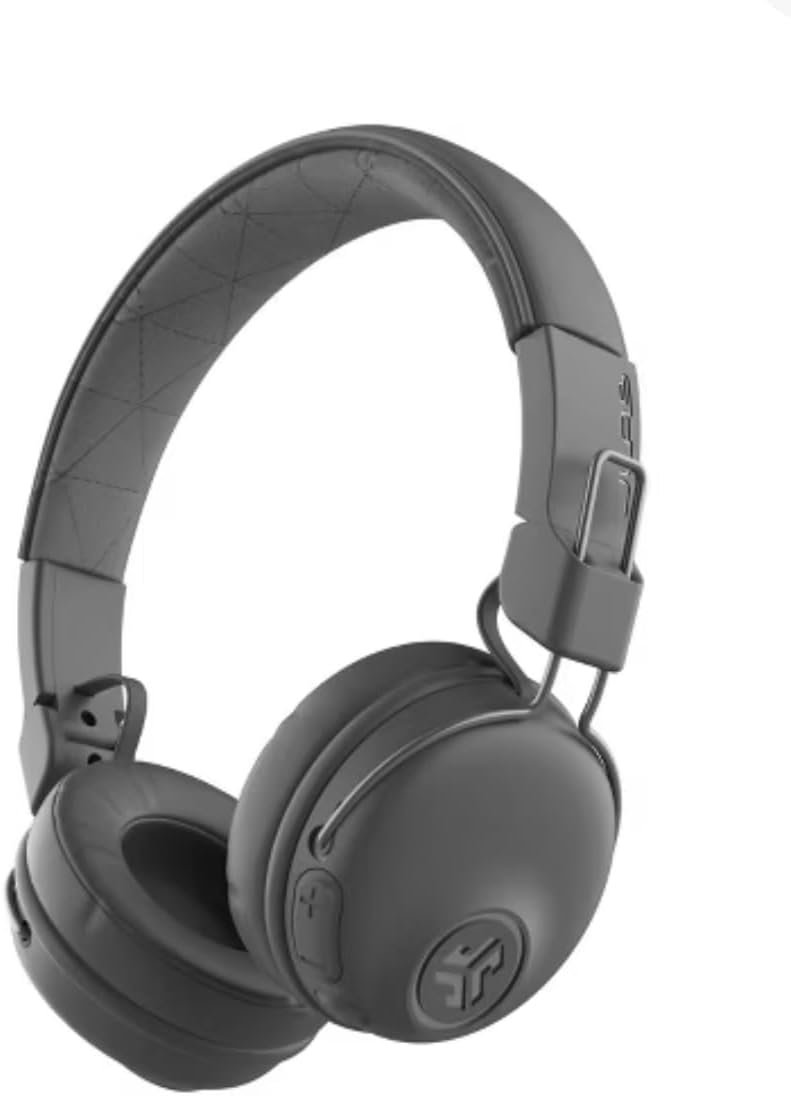 Product details JLAB studio wireless on-ear headset. 30+ hours of playtime Water resistant Built in microphone Bluetooth Foam earcups Specifications Brand JLab Headphone Feature Built-in Microphone Battery Life 30 h Accessories Included Charging Cable