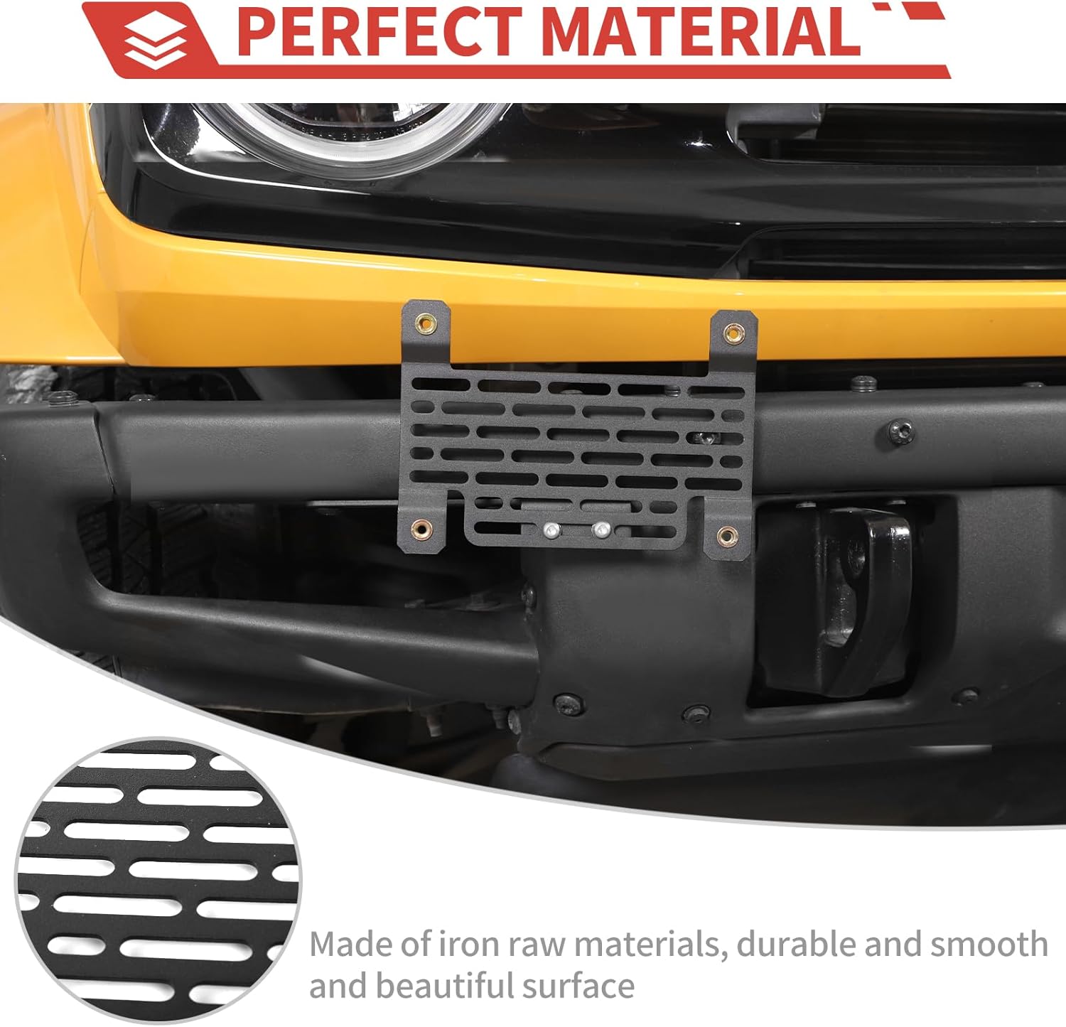 Product Description:Fitment:Compatible with Ford Bronco 2021 2022 2023Condition: 100% Brand NewMaterial: High quality of ironFeatures:Solid and sturdy, not easy to scratch and anti-rust.Can be mounted on the left or right side of the bumper. Does not block front sensor and auxiliary lights.Package Include:1*Front license plate bracket