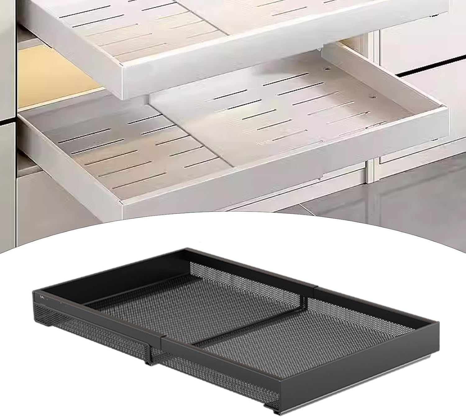 Description: - 【Adjustable Length】: This Pull out cabinet organizer can be adjusted in length according to your needs, making it a versatile addition to any kitchen cabinet - 【Easy Installation】: The pull out basket requires no for installation, ensuring a simple setup that won't damage your cabinets - 【Convenient Disassembly】: The multifunctional sliding cabinet shelfcan be easily disassembled for cleaning and maintenance, providing you with a hassle experience - 【Material】: Made from carbon steel with an anti finish, this slide out spice rack is designed to resist rust and wear - 【Multiple Functions】: The pull out pantry shelf can be used to store your cosmetics, spice jars, toiletries, pots and pans, and other sundriesSize Chart:Large Size : HeightxWidth : 8CMx42CM/3.15inchx16.54inch (Adjustable Length: 32-55CM/12.60inch-12.60inch)Small Size :Height xWidth : 8CMx39CM /3.15inchx15.35inch (Adjustable Length: 31-55CM/12.20inch-12.60inch)Package Includes:1 Pull out Cabinet OrganizersNote:Please allow slightly errors 1-2cm differences due to manual measurement.