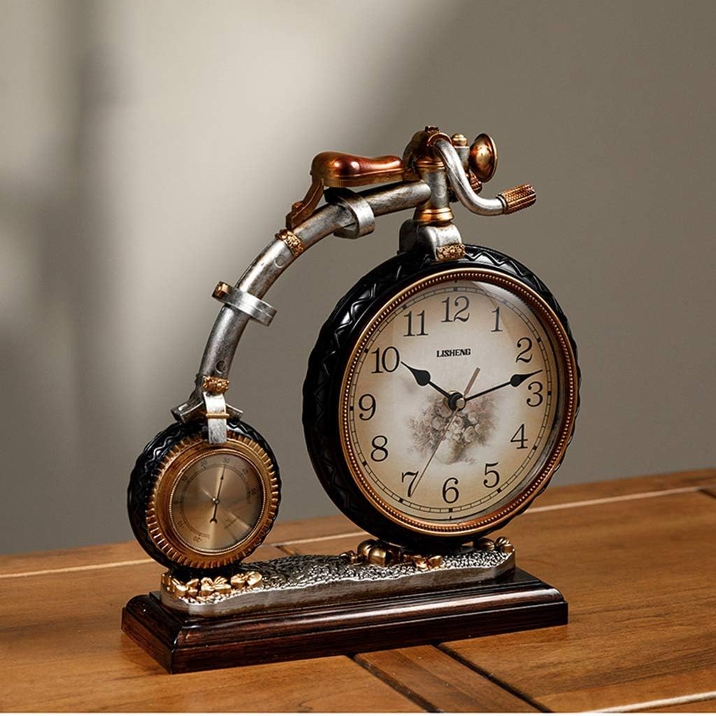 It can be a good decoration for your room, desk or office. The shape of the bike makes the clock cute. Perfect gift for your friends Product Name: Retro Clock Product material: metal plastic (environmental resin) Product size: length 34cm* width 10cm* height 34.5cm Shape: train shape Power supply: AA Batteries (without battery) Application: bedroom/living room/dining room/study/office/hotel, etc. The large bicycle clock and thermometer rotate along the gap to open the battery on the back of the dial. You can use the thermometer for mechanical without installing a battery. Adjust the time. Vintage retro bicycle style student alarm clock table desk clock cool bicycle model home office shelf decoration novelty birthday holiday child adult boy gift.