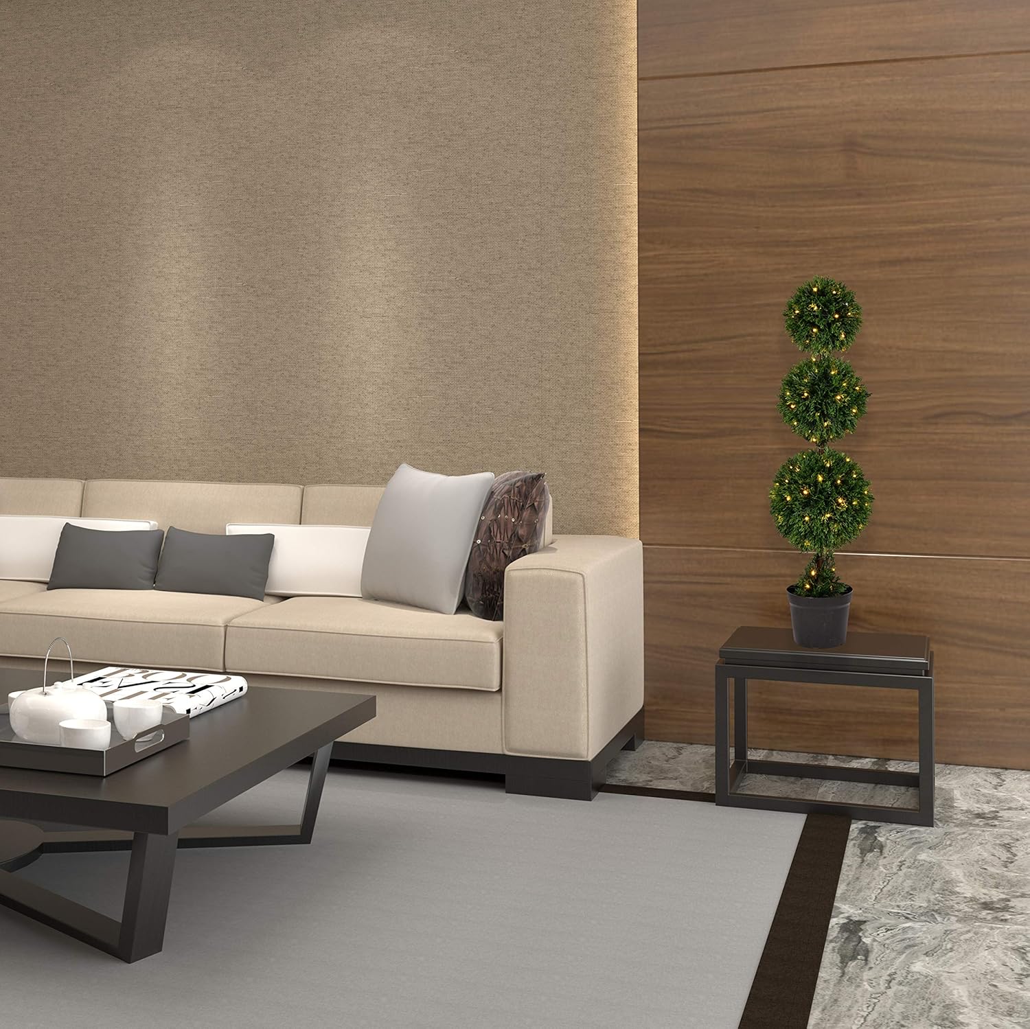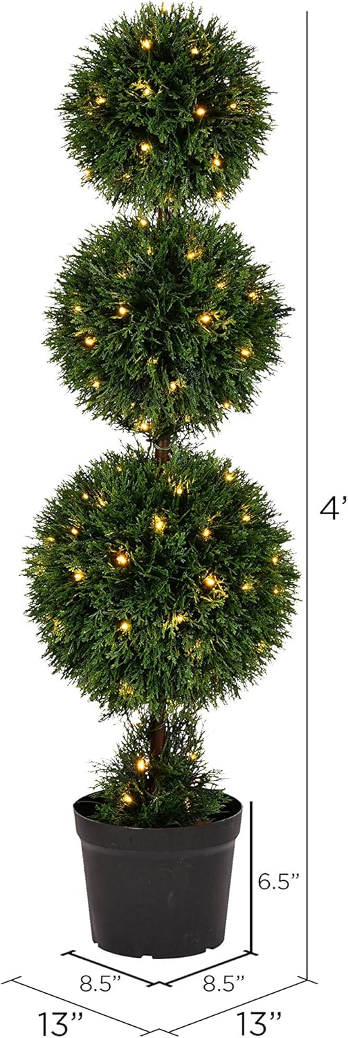 Vickerman 48 inch artificial cedar UV resistant triple ball pre-lit topiary tree. This artificial plant is maintenance free and will suit any decor. Perfect accent for a front porch. Bring a welcome feeling to your home decor with a topiary tree without worrying about keeping it fresh. When your tree arrives you may want to take a minute to shape it for your desired look. This tree will look beautiful for years to come without any maintenance required from you. When necessary simply wipe the plant with a dry cloth to remove dust. Vickerman has been an industry leader since 1940. Enjoy this expert designed triple ball cedar tree in the room of your choice. This artificial topiary is wrapped with 70 warm white 3mm LED lights.