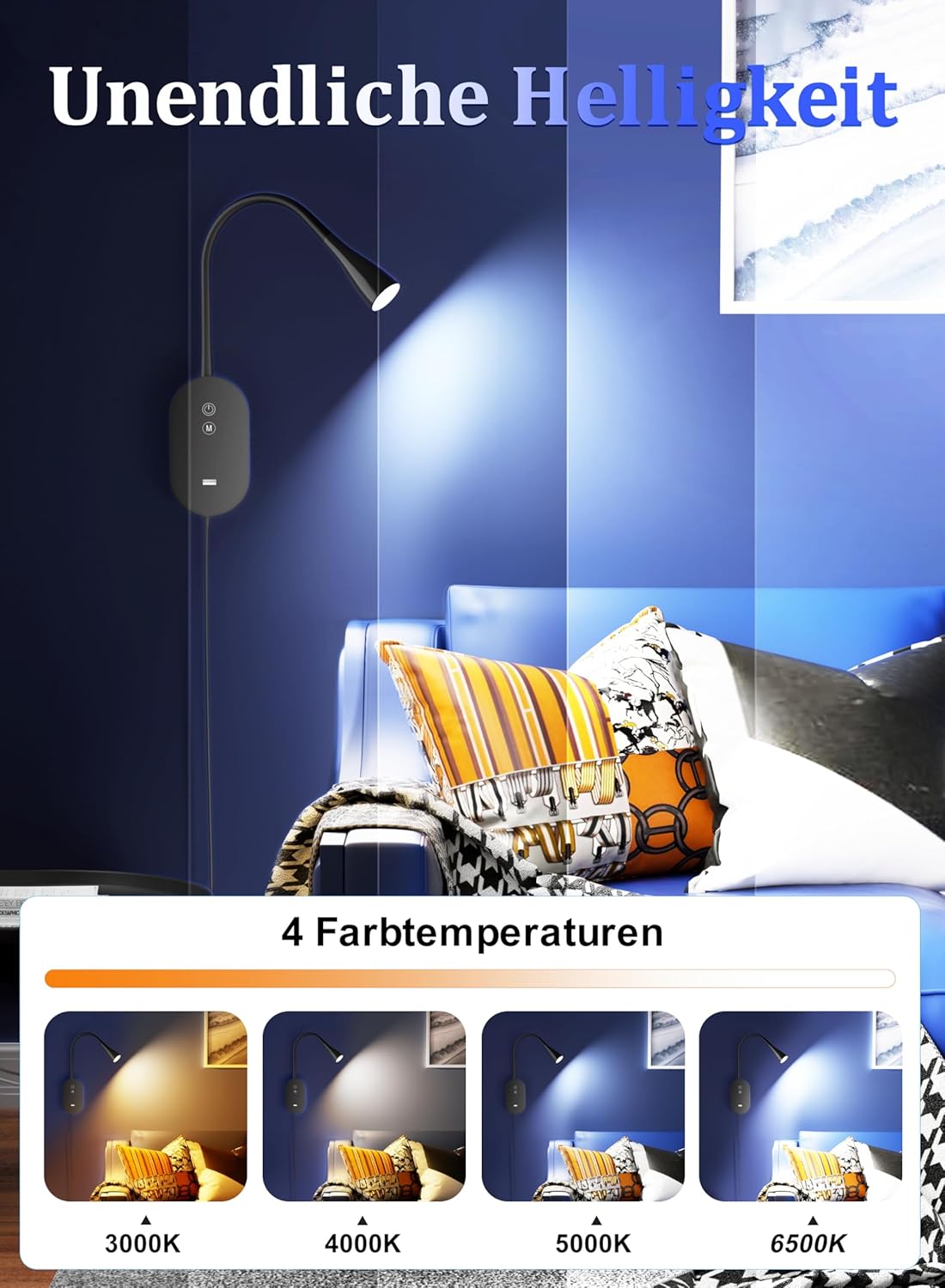| Additional Features | 2A USB Output Fast Charge, 4 Color Temperature(3000K-4000K-5000K-6500K), 4-Hour Auto-Off & Memory Function, 5 Levels of brightness & Infinitely brightness (from10% to 100%), 95+ Color Rendering Index |