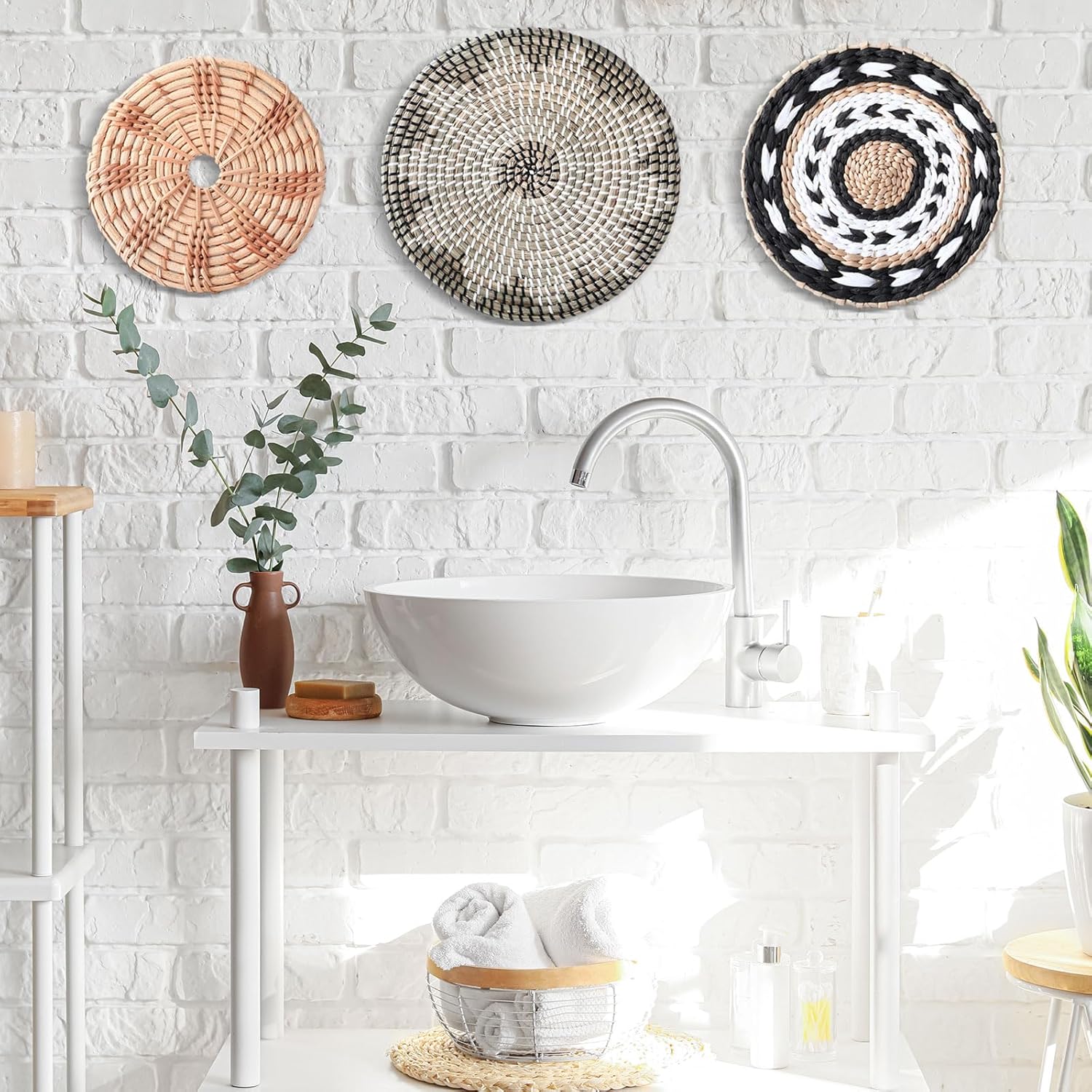Features: Unparalleled Craftsmanship: Indulge in the unmatched craftsmanship of these woven wall baskets, where each piece tells a story of skill and dedication. Expertly handwoven using seagrass, rattan, and wicker, this decor isn't just visually stunning. It's a testament to the artisanal touch. Elevate your home's decor with pieces that reflect a deep passion for quality and uniqueness, cherished by design aficionados and casual decorators alike. Thoughtful, Heartfelt Gift: Searching for the ideal gift that blends beauty and thoughtfulness? This bohemian wall basket set is an ideal choice for housewarmings, birthdays, or any special occasion. Its classic design and functional artistry offer a memorable gifting experience, promising to leave a meaningful impression. Delight loved ones with a gift that adds a nice and tasteful touch to their home. Specifications: Material: seagrass, rattan, and wicker Color: as shown in the picture Size: as shown in the picture Package includes: 12 x Boho wall basket decor Notes: Manual measurement, please allow slight errors on size. The color may exist a slight difference due to different screen displays.